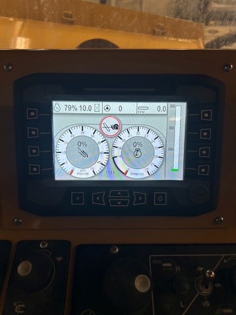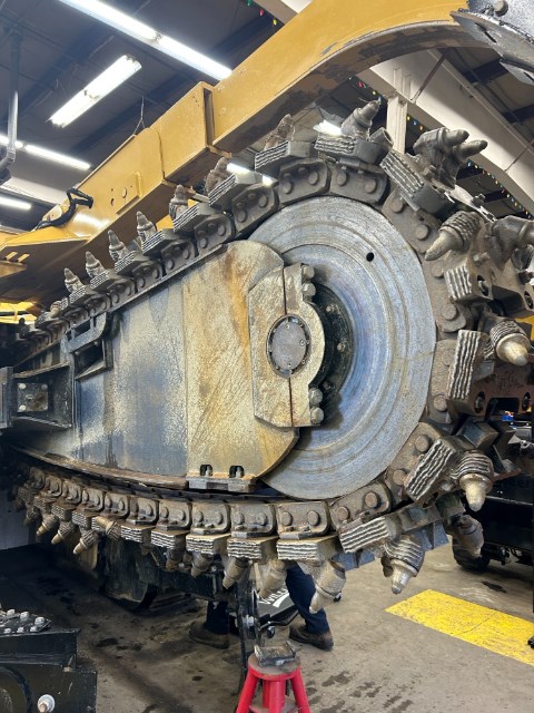 DEALER MAINTAINED RENTAL UNIT WITH TILT TRACKS, 20" TRIPLE GROUSER STEEL PADS AND CHAIN, AUXILIARY HYDRAULICS, AUTOMATIC LUBRICATION SYSTEM, 6' DEEP BOOM WITH 18" ROTARY CHAIN, CRUMBER, AND DIRT DRAGS. HOURS ARE ESTIMATED